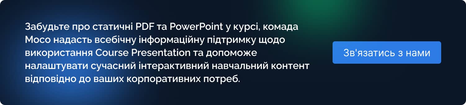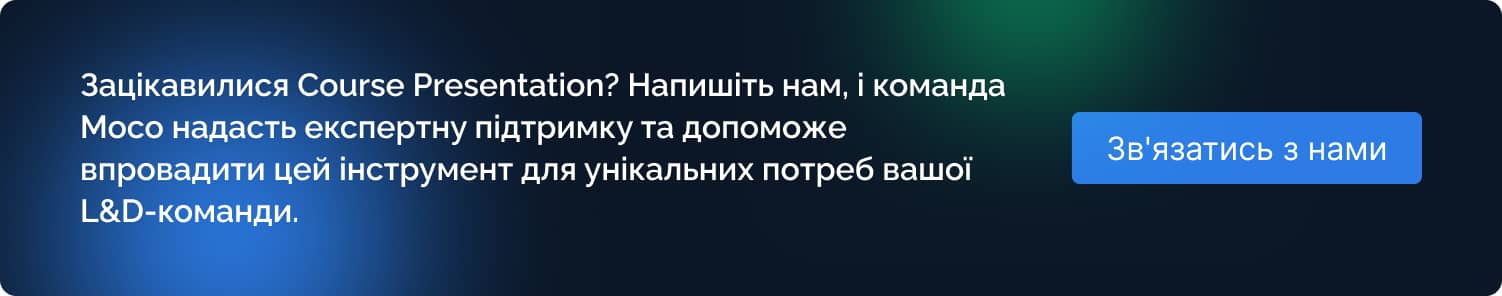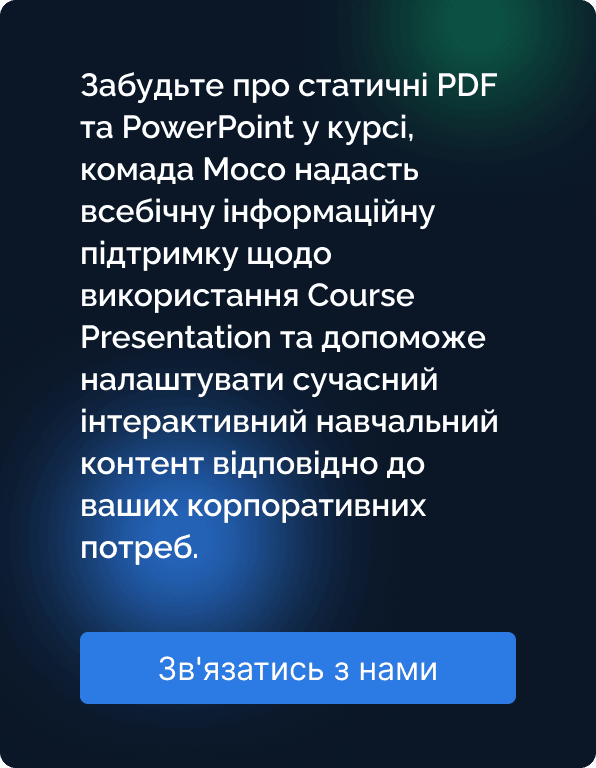 Course Presentation — це не просто черговий інтерактивний інструмент, це своєрідний місток між інформацією, яку ви повинні донести, та знаннями, які співробітники реально засвоять.