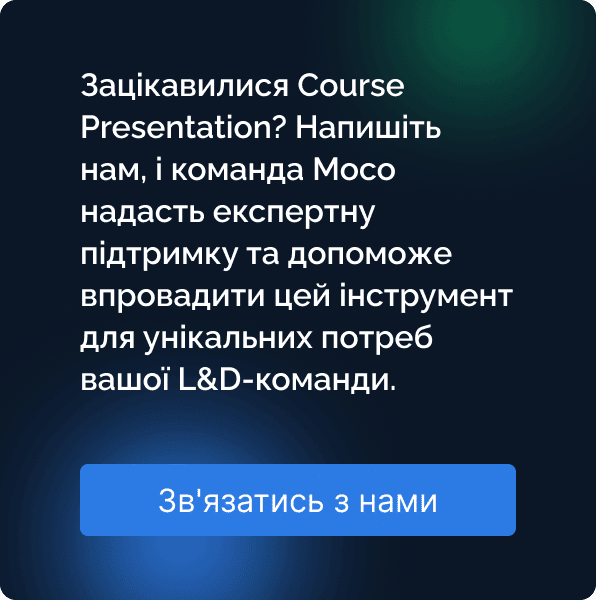 У цій статті розберемося, що таке Course Presentation і як L&D-спеціалісти та HR-фахівці можуть використовувати його на 100%.