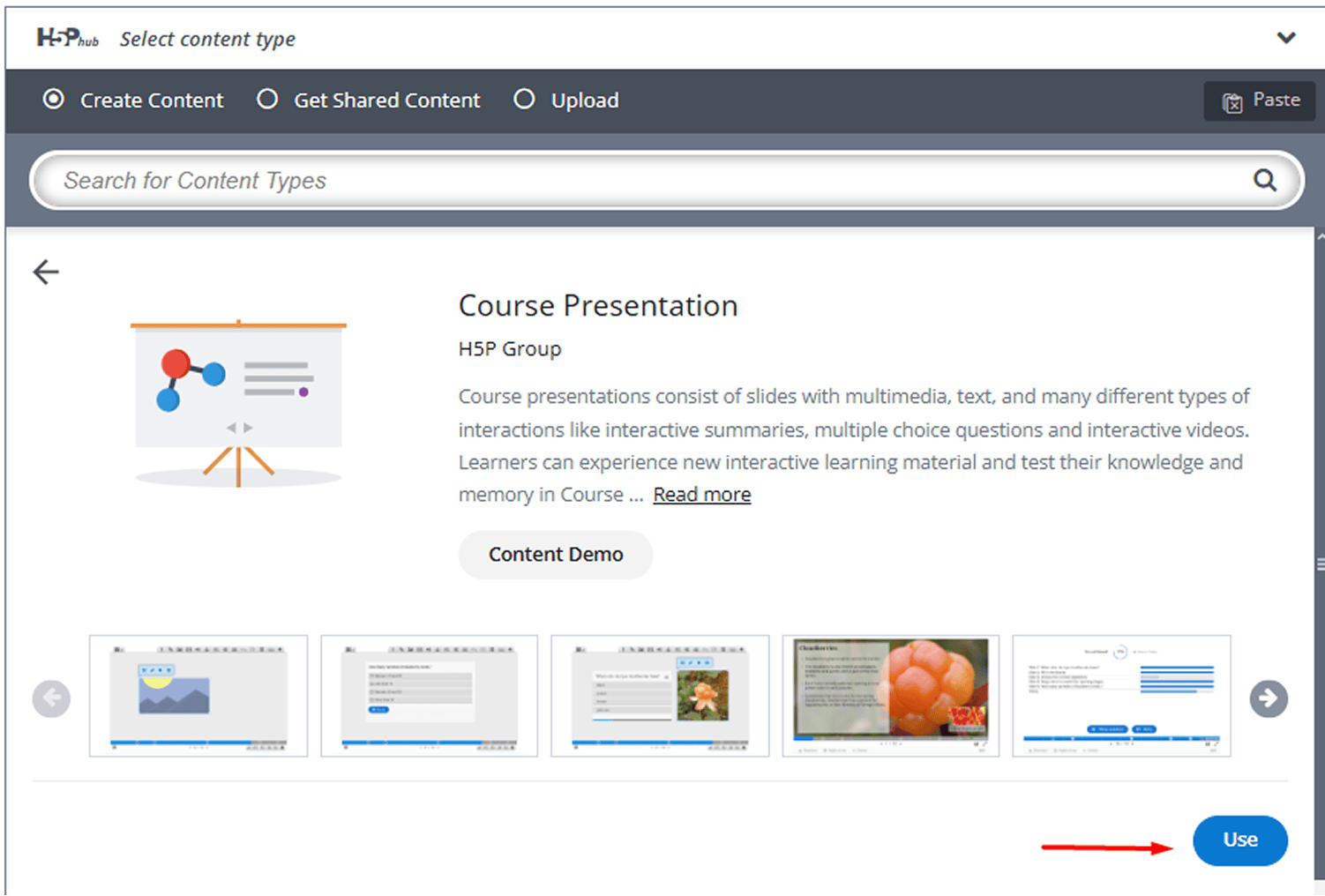 Course Presentation — це тип контенту, який дозволяє створювати повноцінні, візуально привабливі презентації на основі слайдів безпосередньо у веб-браузері. Він поєднує в собі звичайний формат презентації зі здатністю інтегрувати різноманітні мультимедійні та інтерактивні елементи.